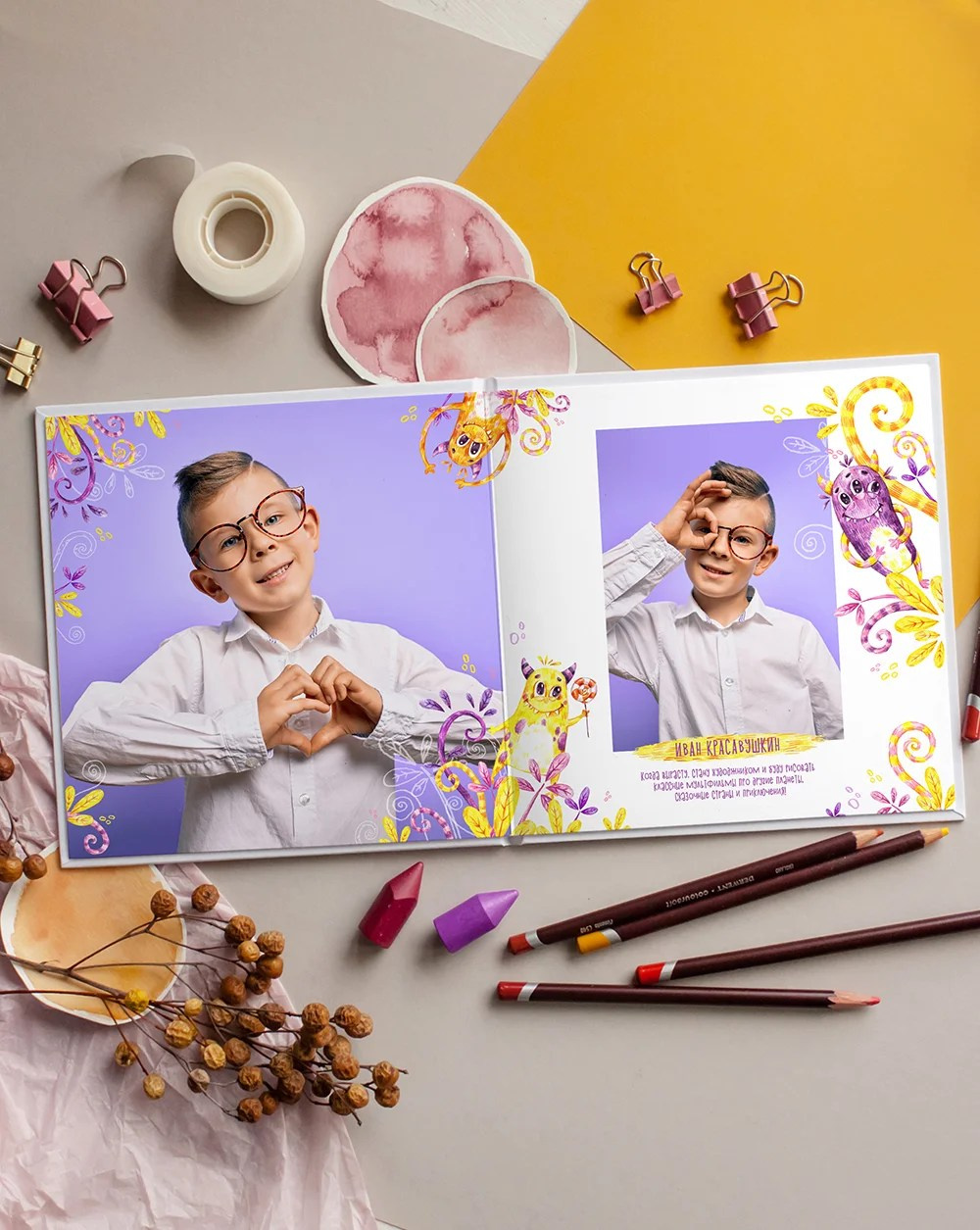 Можно всех их менять, чтобы подобрать идеального для ребенка — главного героя альбома